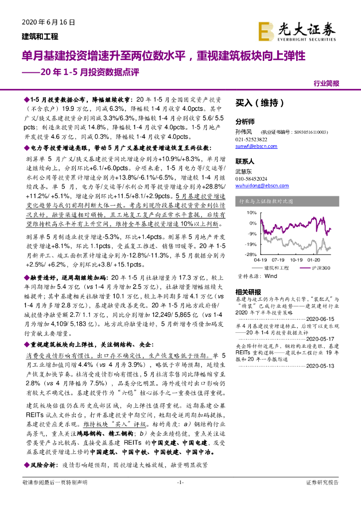 光大证券:建筑和工程20年1-5月投资数据点评:单月基建投资增速升至两位数水平,重视建筑板块向上弹性.pdf