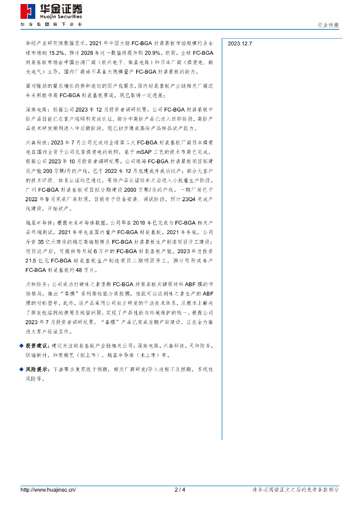 华金证券:半导体行业快报:封装基板国产化迫在眉睫,FC-BGA基板国产厂商突破在即.pdf