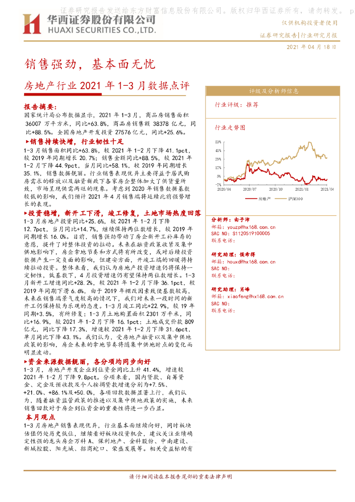 华西证券:房地产行业2021年1-3月数据点评:销售强劲,基本面无忧.pdf