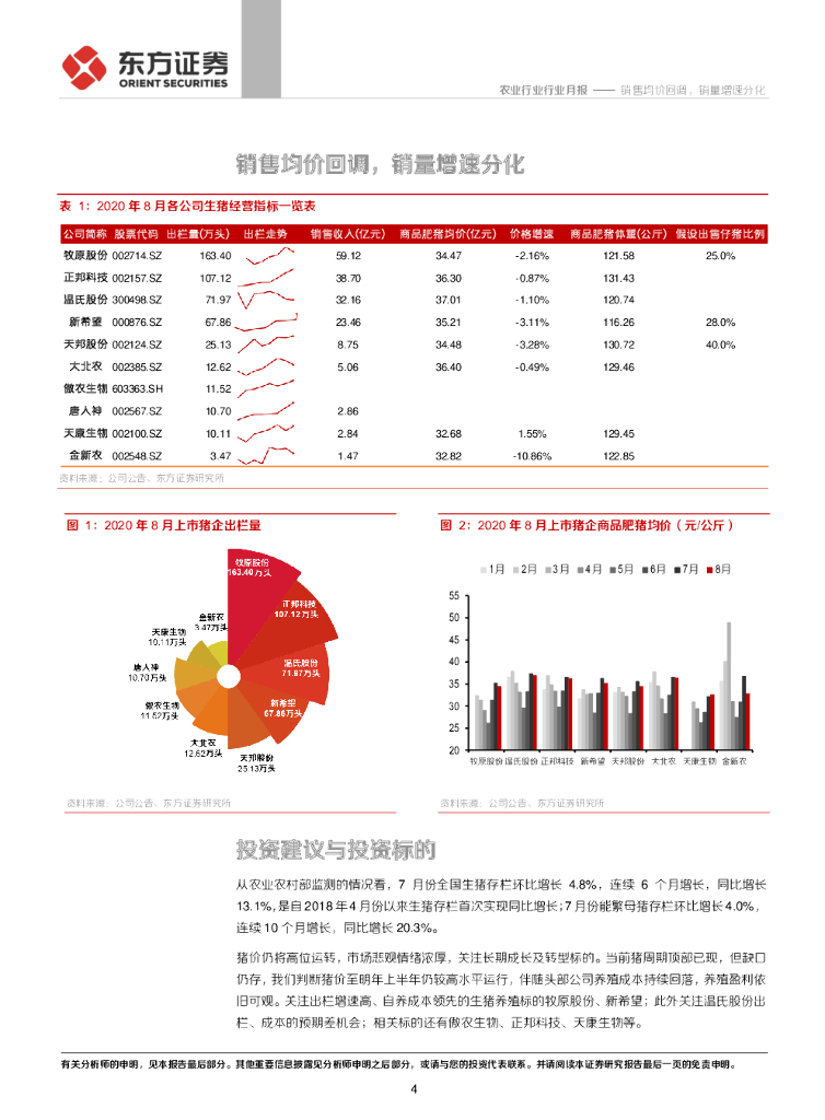 东方证券:2020年生猪企业8月出栏跟踪:销售均价回调,销量增速分化.pdf