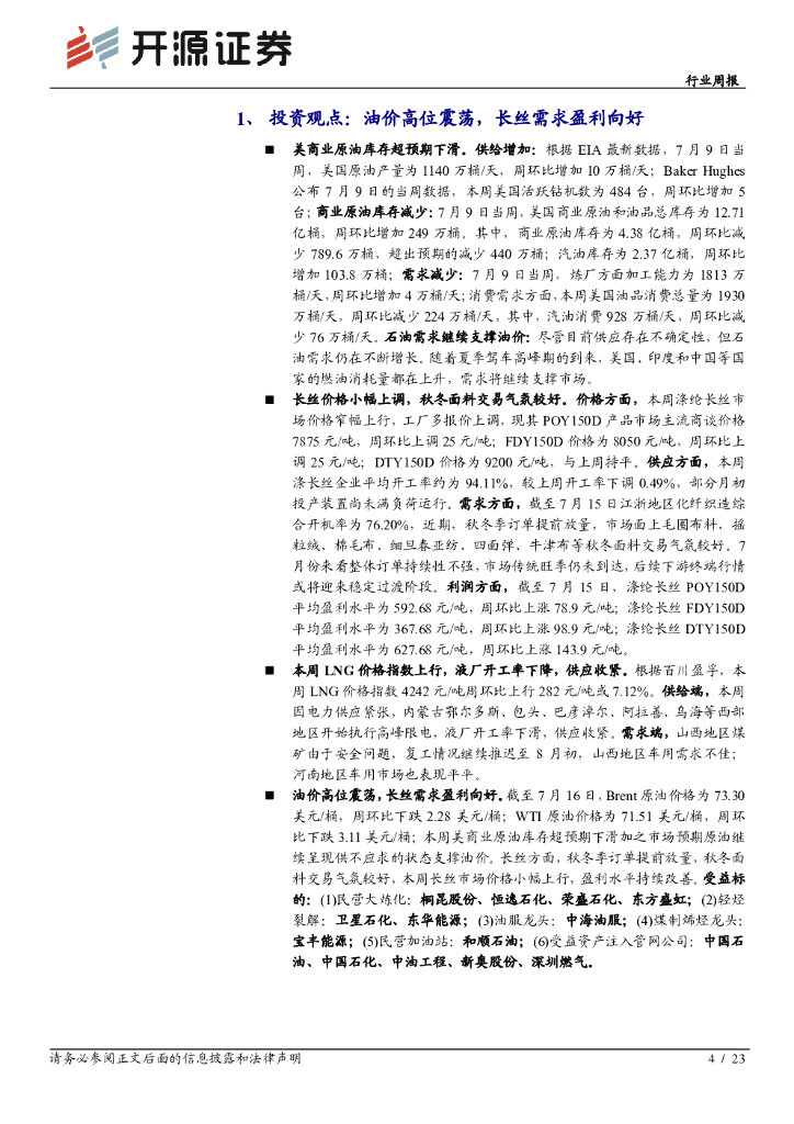 开源证券:石油化工行业周报:油价高位震荡,长丝需求盈利向好.pdf