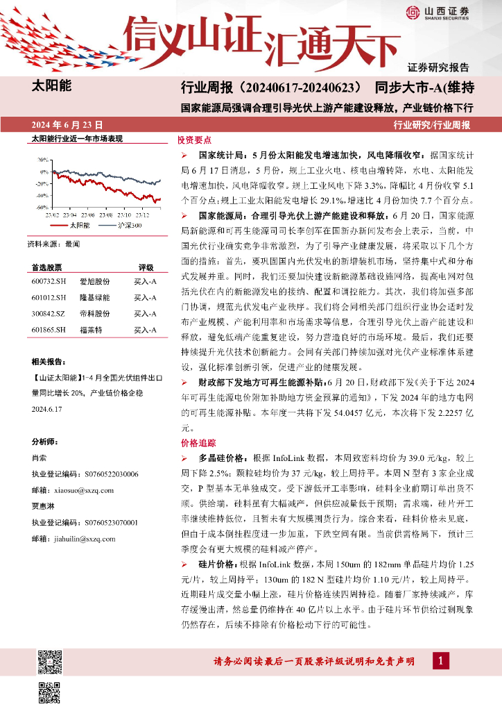 山西证券:太阳能行业周报:国家能源局强调合理引导光伏上游产能建设释放,产业链价格下行.pdf