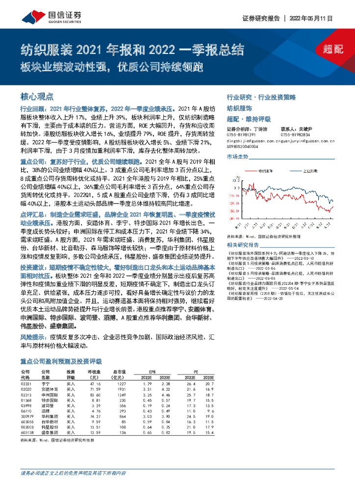 国信证券:纺织服装2021年报和2022一季报总结:板块业绩波动性强,优质公司持续领跑.pdf