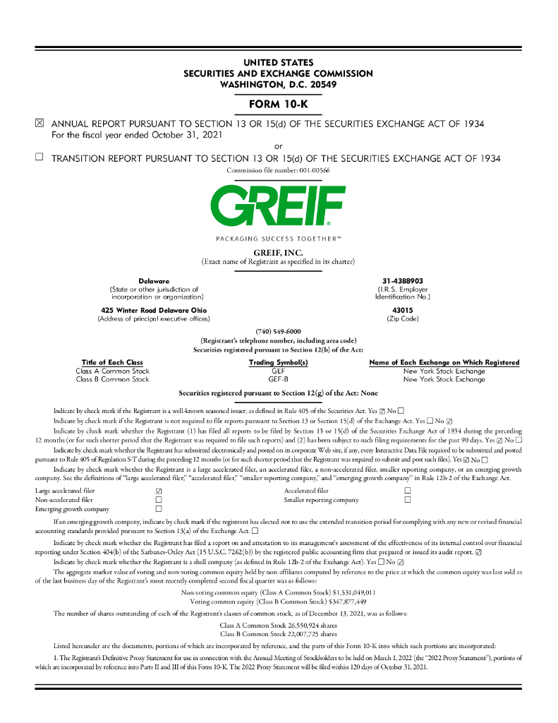 Greif Inc.(GEF)2021财年年度报告(英文版).pdf