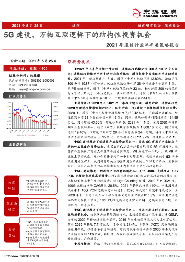 东海证券:2021年通信行业半年度策略报告:5G建设、万物互联逻辑下的结构性投资机会.pdf