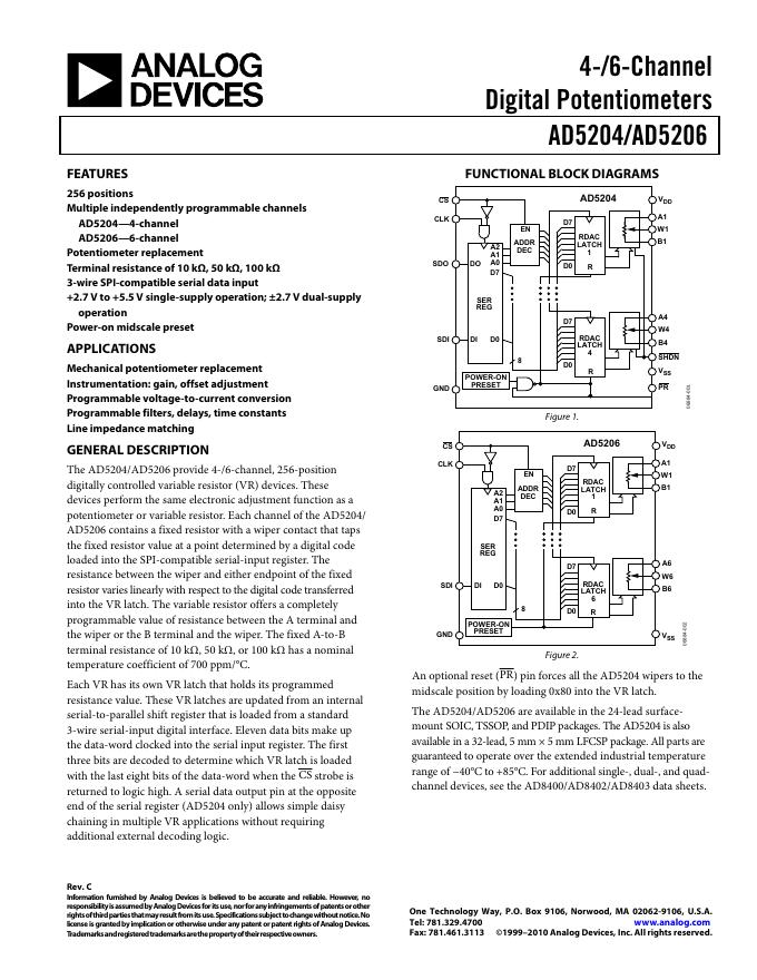 ANALOG DEVICES AD5204 英文产品 数据手册 Rev C.pdf