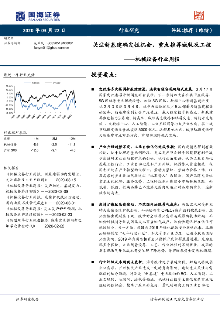 国海证券:机械设备行业周报:关注新基建确定性机会,重点推荐城轨及工控.pdf
