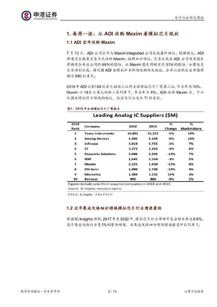 申港证券:电子行业研究周报:从ADI收购Maxim看模拟芯片现状.pdf