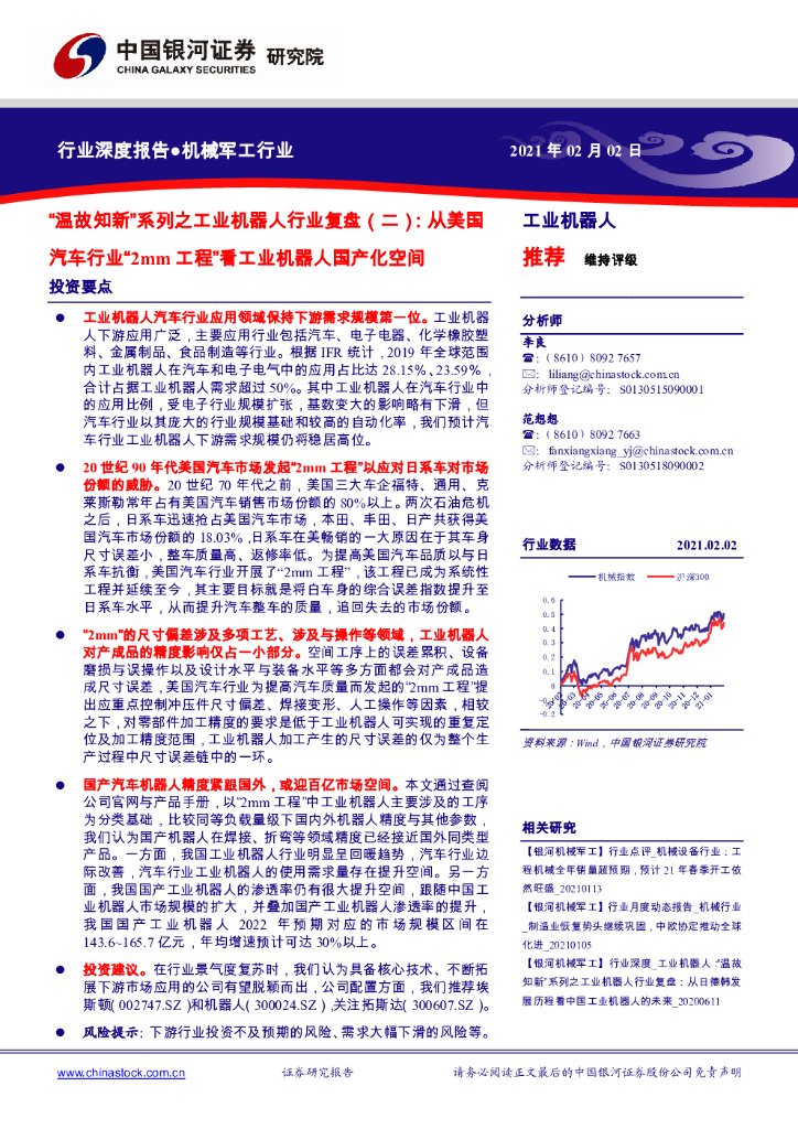 中国银河:机械军工行业:“温故知新”系列之工业机器人行业复盘(二):从美国汽车行业“2mm工程”看工业机器人国产化空间.pdf