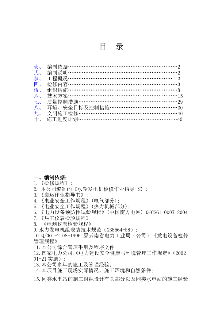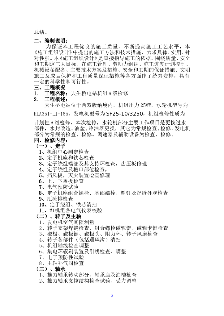 水电站水轮发电机组A级检修施工组织设计.doc