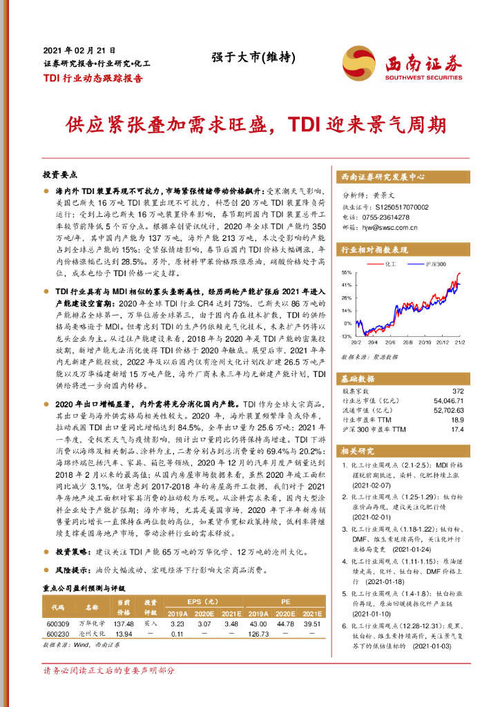 西南证券:TDI行业动态跟踪报告:供应紧张叠加需求旺盛,TDI迎来景气周期.pdf