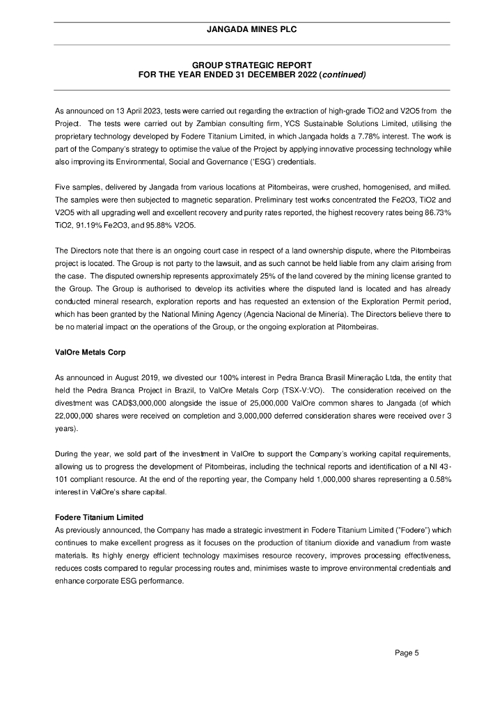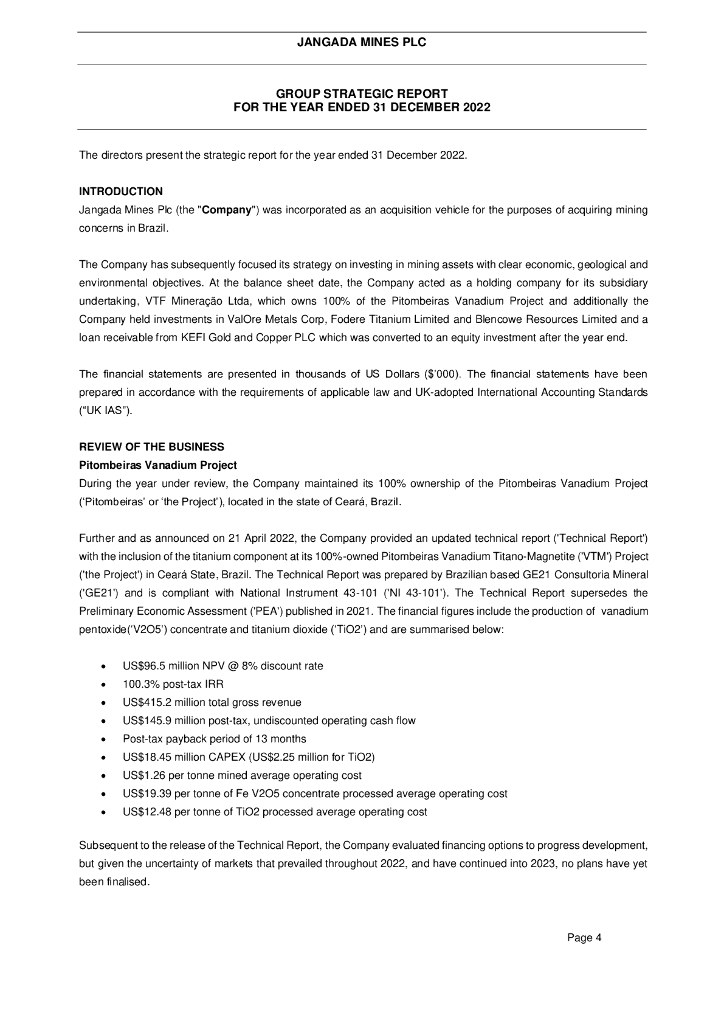 Jangada Mines Plc(JAN)2022财年年度报告(英文版).pdf