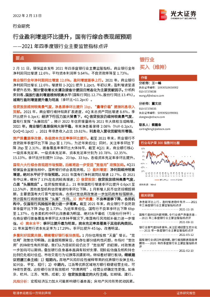 光大证券:2021年四季度银行业主要监管指标点评:行业盈利增速环比提升,国有行综合表现超预期.pdf