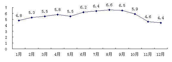 价格:全市居民消费价格指数高位开局,6月份同比涨幅突破6%,8月份达到年内最高值(6.6%),9月份以来持续回落,12月份回落至4.4%。全年居民消费价格比上年上涨5.6%,涨幅高于上年3.2个百分点。其中,食品价格上涨10.6%,非食品价格上涨3.9%;消费品价格上涨5.1%,服务项目价格上涨6.4%。
