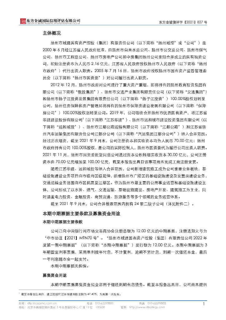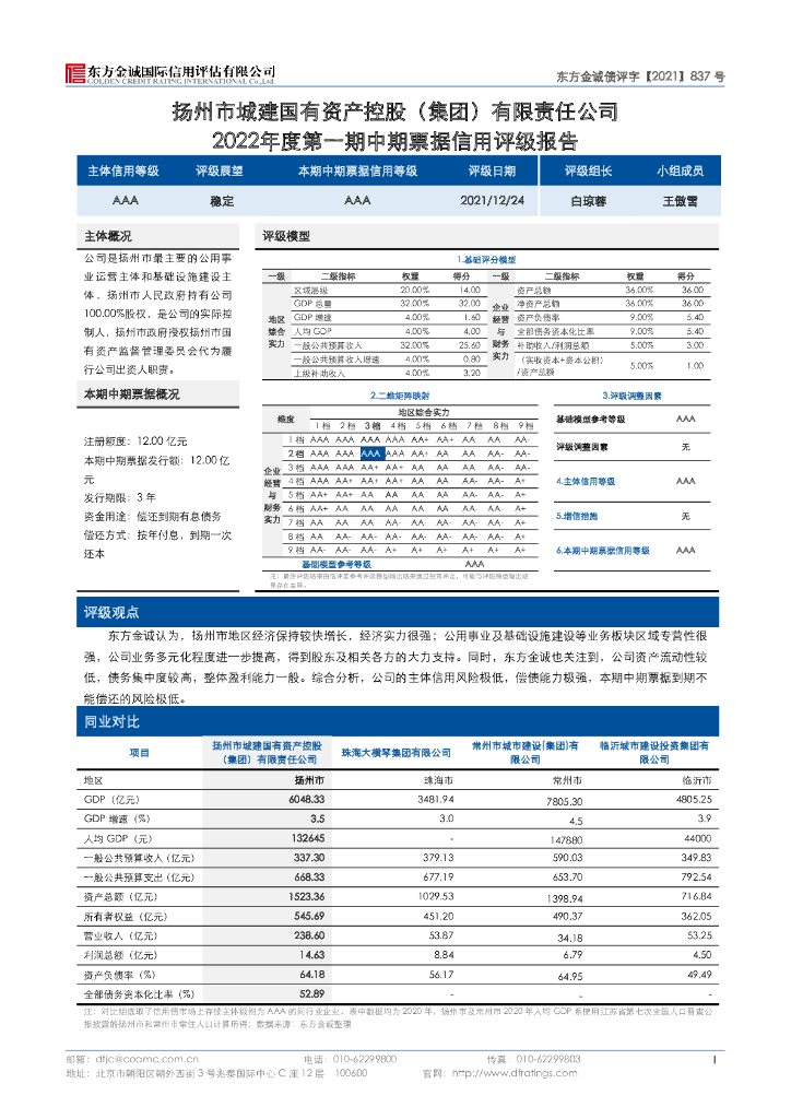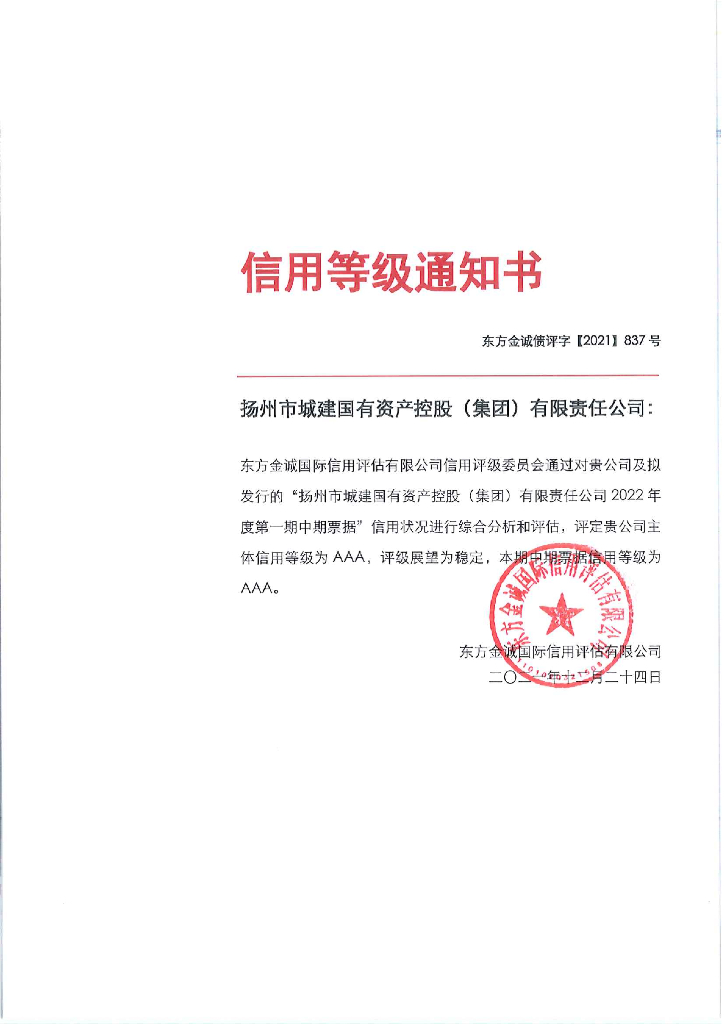 东方金诚:扬州市城建国有资产控股(集团)有限责任公司2022年度第一期中期票据信用评级报告.pdf