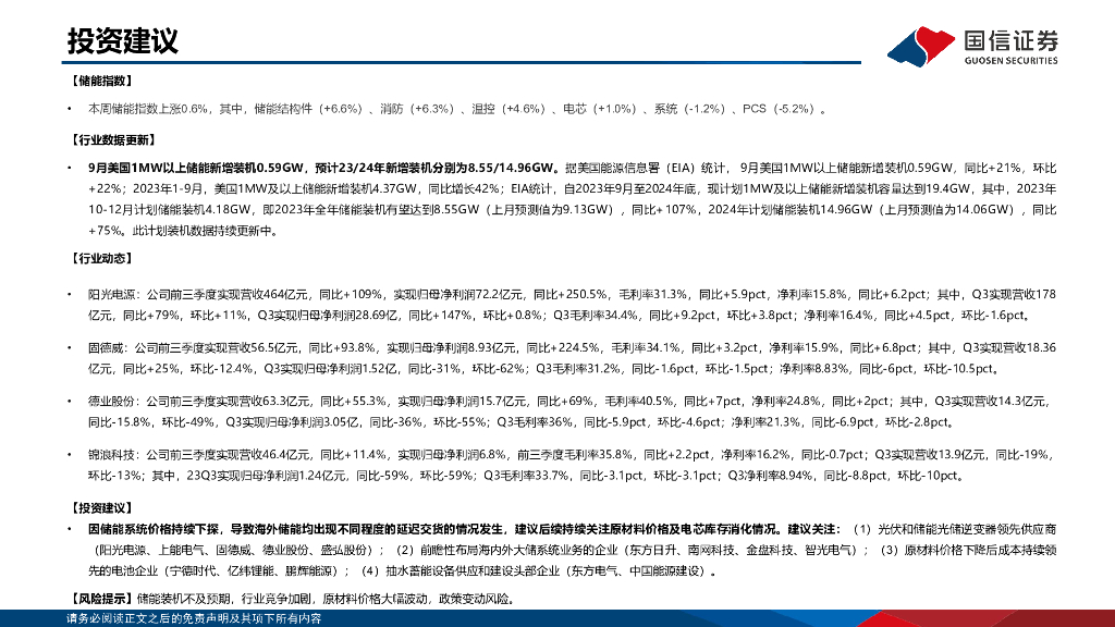 国信证券:储能产业链周评(10月第4周):光储公司陆续披露三季报,9月美国储能装机环比略增.pdf
