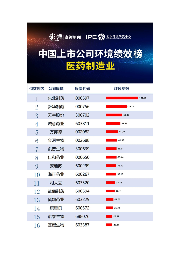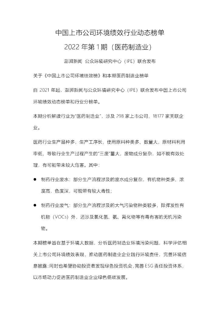 IPE公众环境研究中心:中国上市公司环境绩效行业动态榜单 2022年第1期(医药制造业).pdf