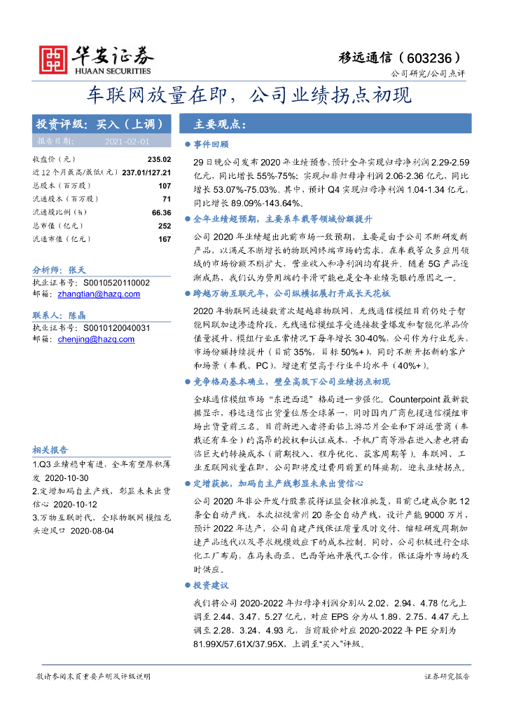 华安证券:移远通信(603236)-车联网放量在即,公司业绩拐点初现.pdf
