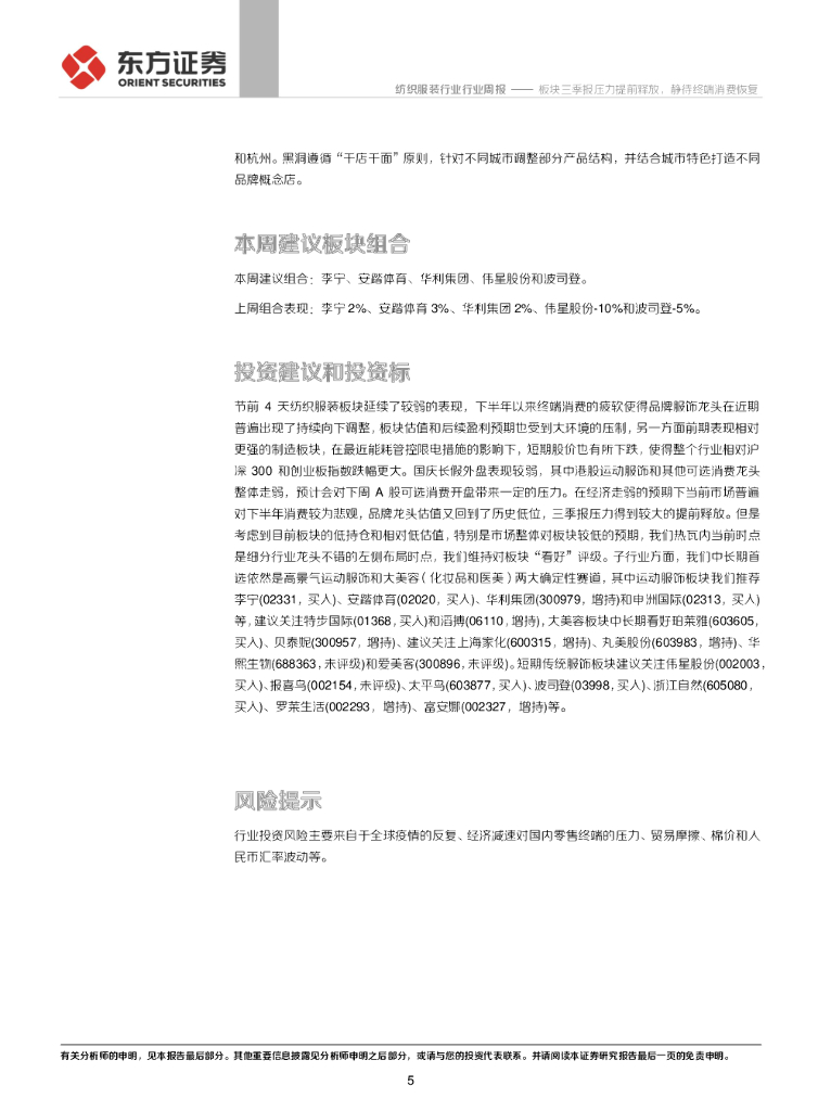 东方证券:纺织服装行业:板块三季报压力提前释放,静待终端消费恢复.pdf