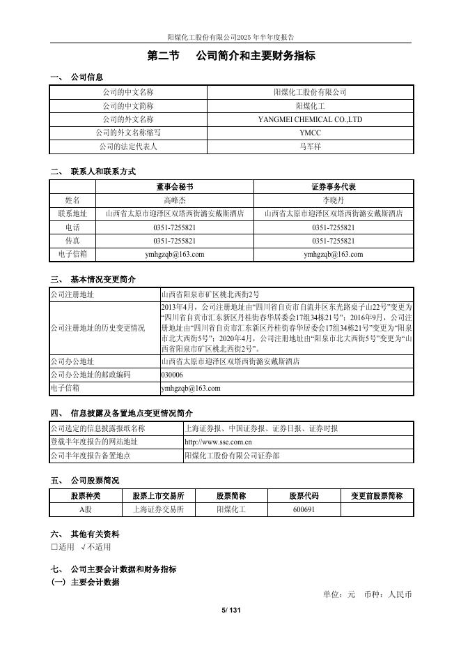 600691-阳煤化工:阳煤化工股份有限公司2025年半年度报告.pdf