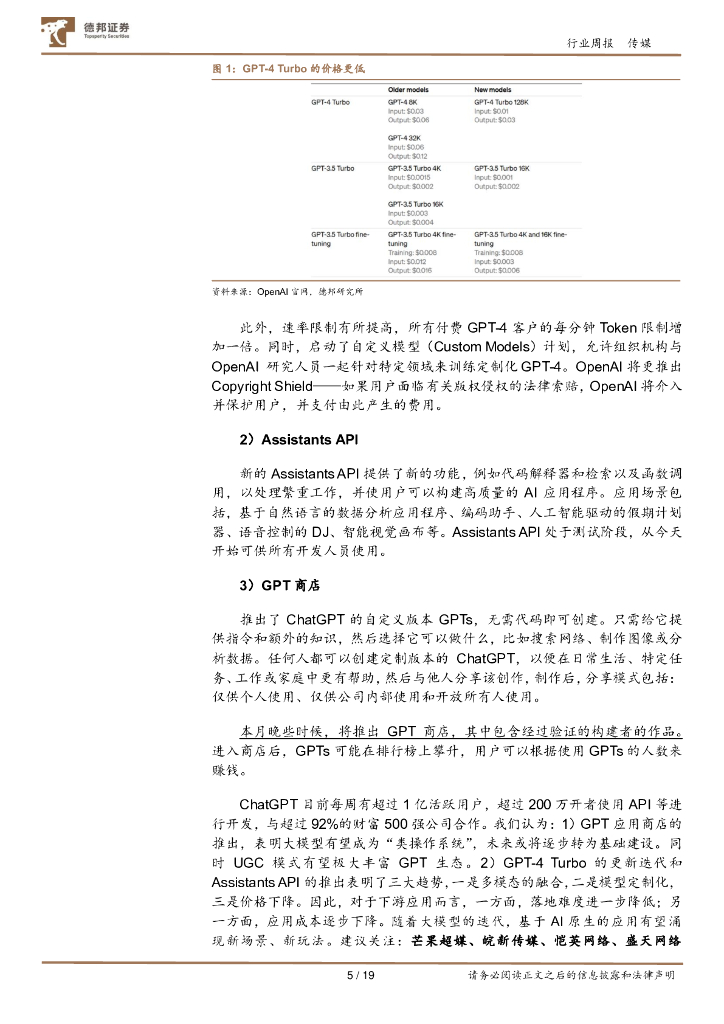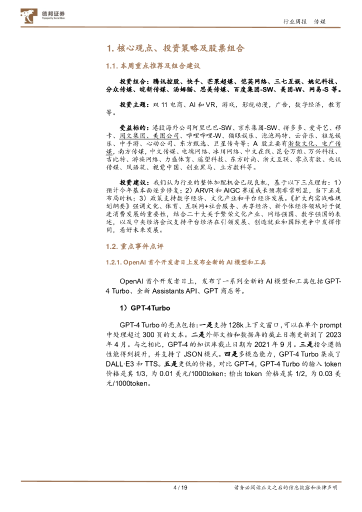 德邦证券:传媒互联网行业周报:GPT-4 Turbo 发布,下游应用难度与成本或降低;双十一电商数据亮眼.pdf