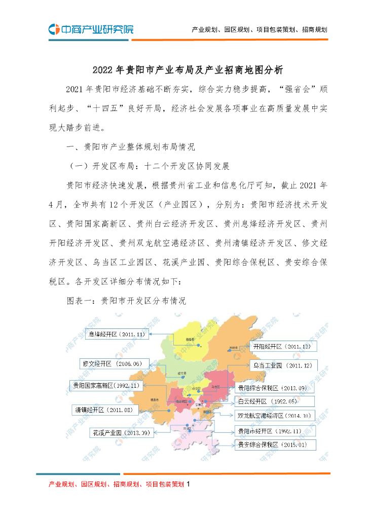 中商产业研究院:2022年贵阳市产业布局及产业招商地图分析.pdf
