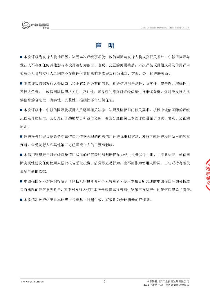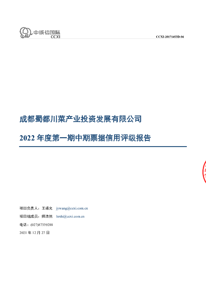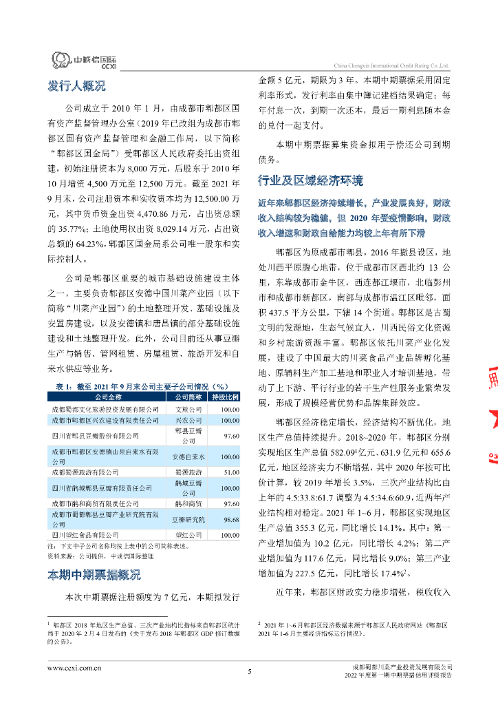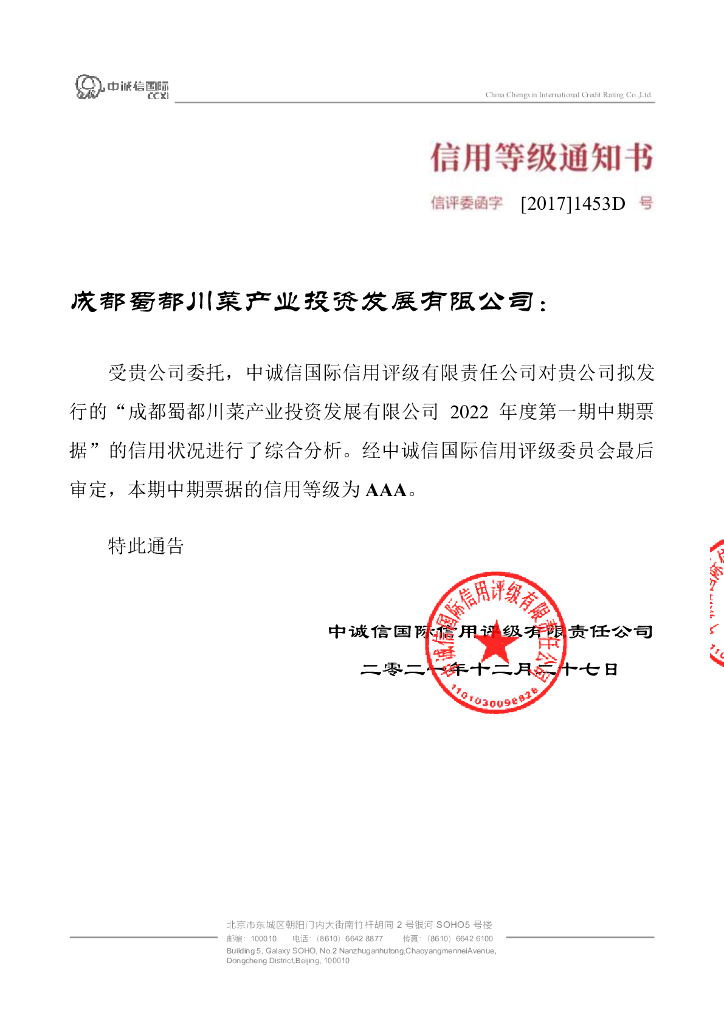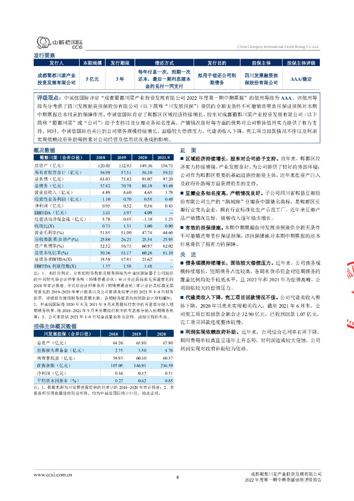 中诚信:成都蜀都川菜产业投资发展有限公司2022年度第一期中期票据信用评级报告.pdf