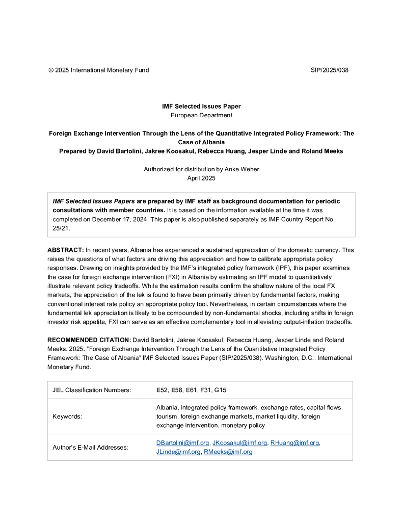 国际货币基金组织:从量化综合政策框架看外汇干预:以阿尔巴尼亚为例(英文版).pdf