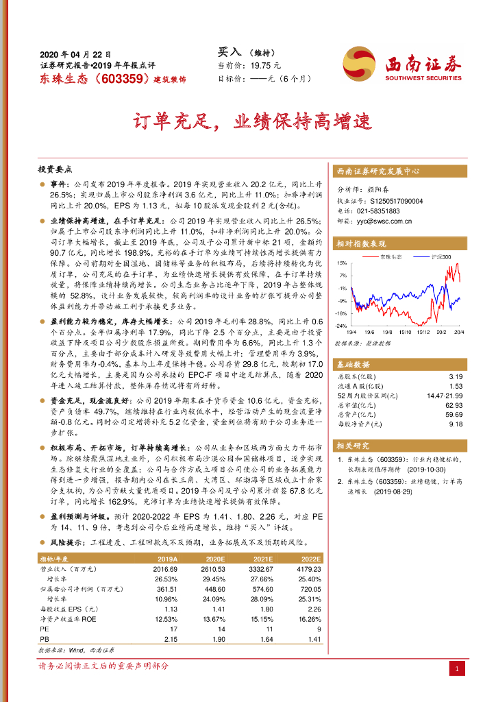 西南证券:东珠生态(603359)-订单充足,绩保持高增速.pdf