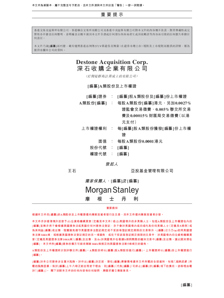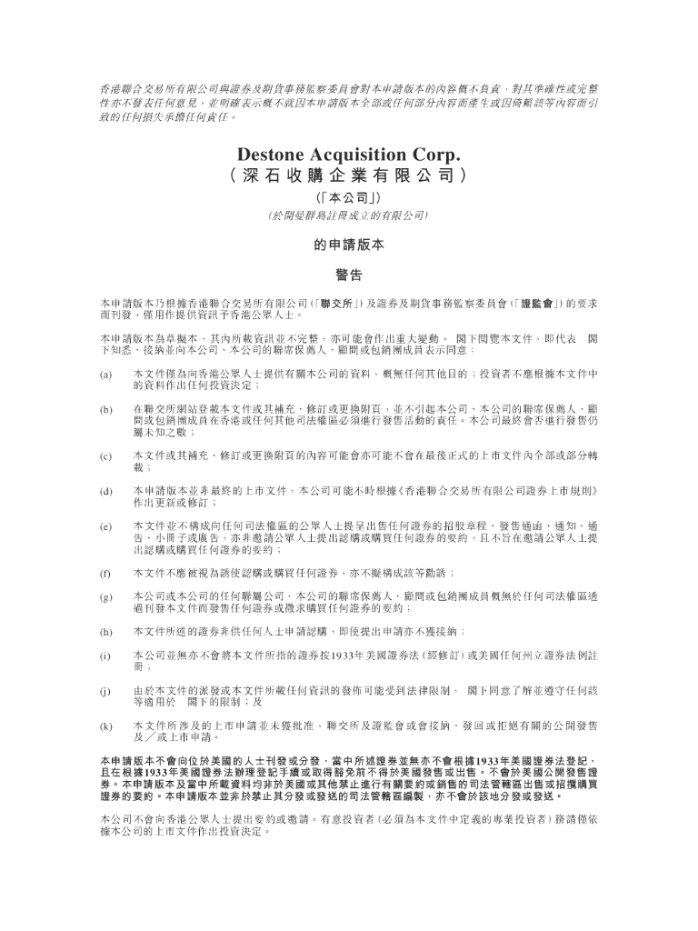 万科原董事会主席王石成立SPAC深石收购企业有限公司港交所IPO上市招股说明书.pdf