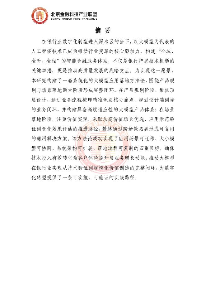 北京金融科技产业联盟:2026年面向银行业务场景赋能的大模型应用落地方法论报告.pdf