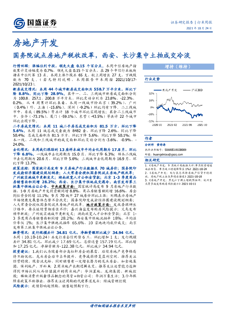 国盛证券:房地产开发行业周报:国务院试点房地产税收改革,西安、长沙集中土拍成交冷淡.pdf