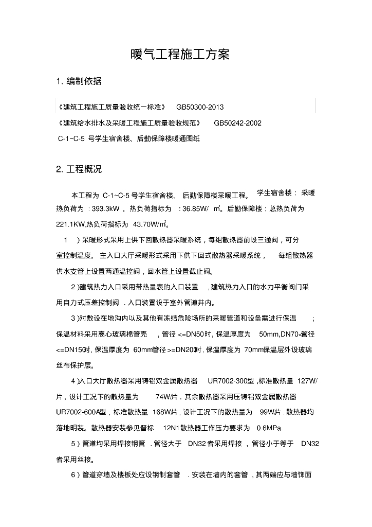 学生宿舍楼、后勤保障楼采暖工程暖气安装施工方案.pdf