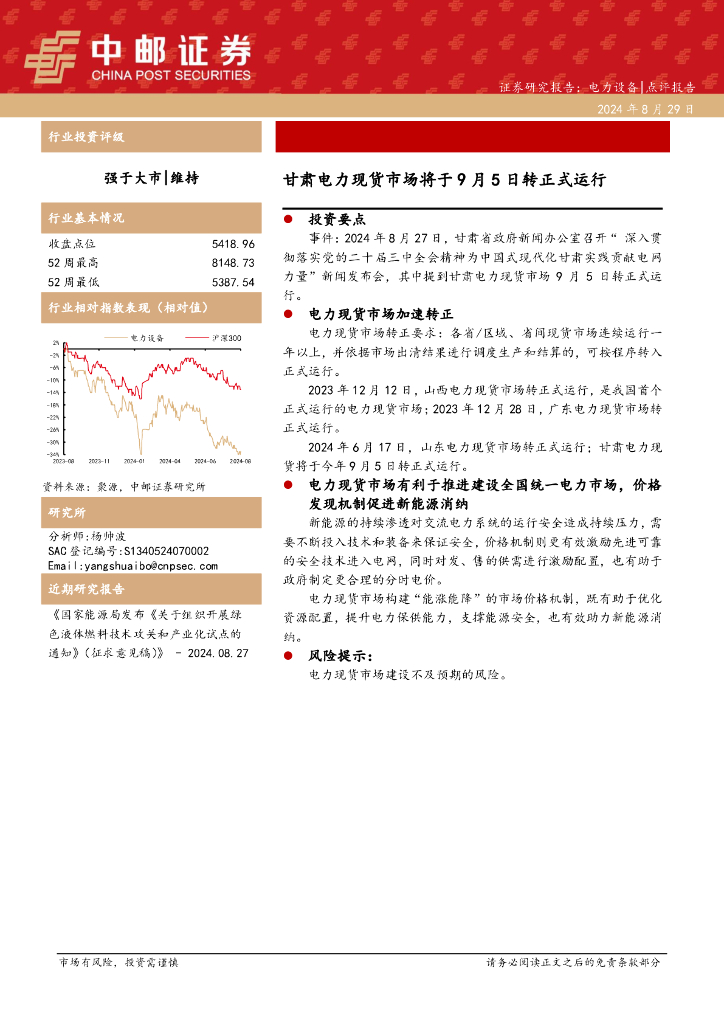 中邮证券:电力设备:甘肃电力现货市场将于9月5日转正式运行.pdf