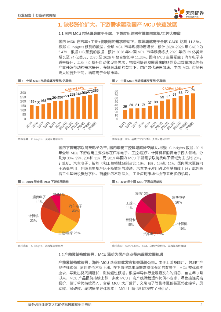 天风证券:半导体:MCU 缺货超预期,需求支撑国内企业量价齐升.pdf
