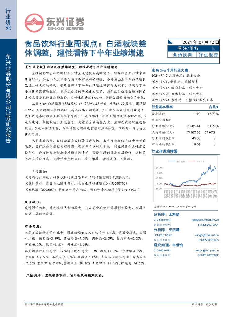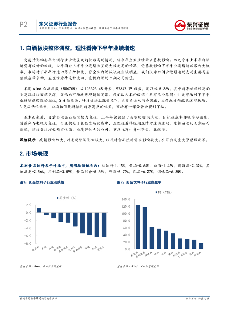 东兴证券:食品饮料行业周观点:白酒板块整体调整,理性看待下半年业绩增速.pdf