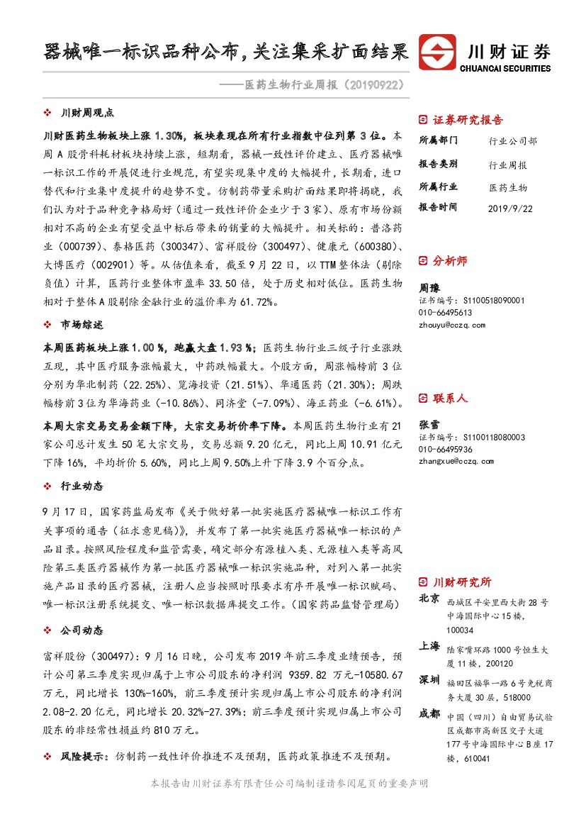 川财证券:医药生物行业周报:器械唯一标识品种公布,关注集采扩面结果.pdf