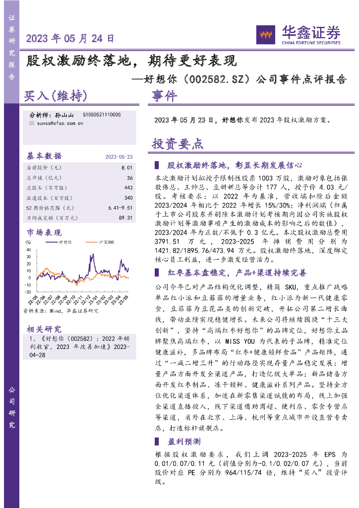 华鑫证券:好想你(002582)-公司事件点评报告:股权激励终落地,期待更好表现.pdf