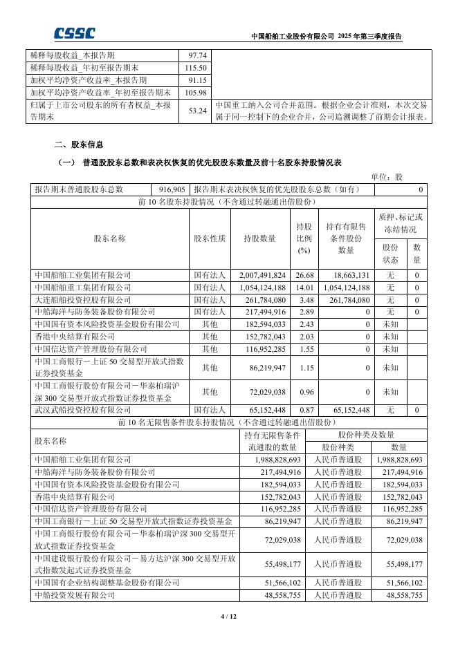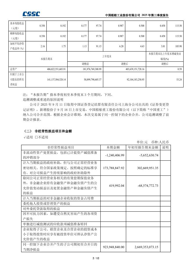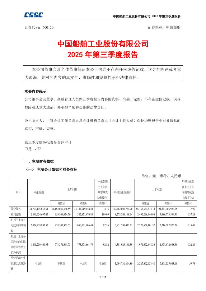600150-中国船舶:中国船舶工业股份有限公司2025年第三季度报告.pdf
