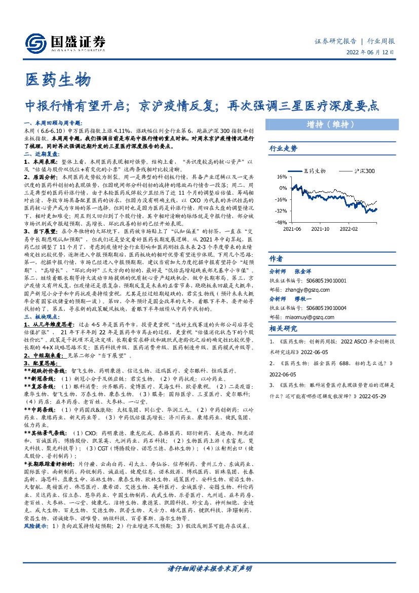 国盛证券:医药生物行业周报:中报行情有望开启;京沪疫情反复;再次强调三星医疗深度要点.pdf