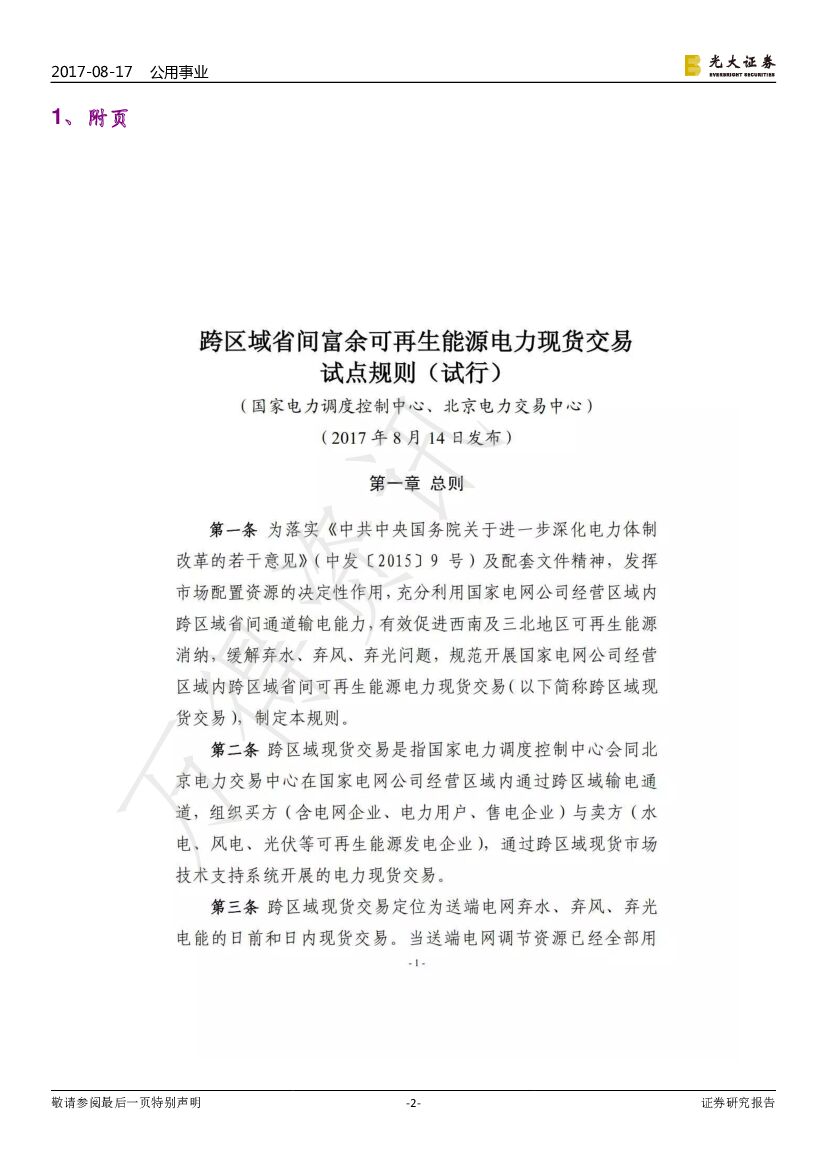 光大证券:公用事业行业简报:跨区可再生能源电力现货试点重磅来袭.pdf