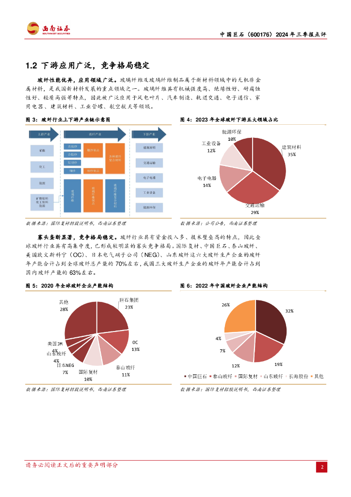 西南证券:中国巨石(600176)-2024年三季报点评:玻纤行业龙头,综合优势突出.pdf