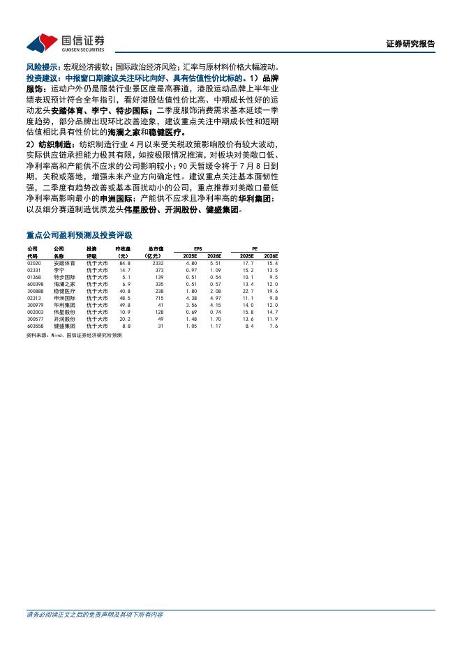 国信证券:纺织服装7月投资策略暨中报业绩前瞻:618运动户外细分龙头排名上升,二季度业绩稳中向好.pdf