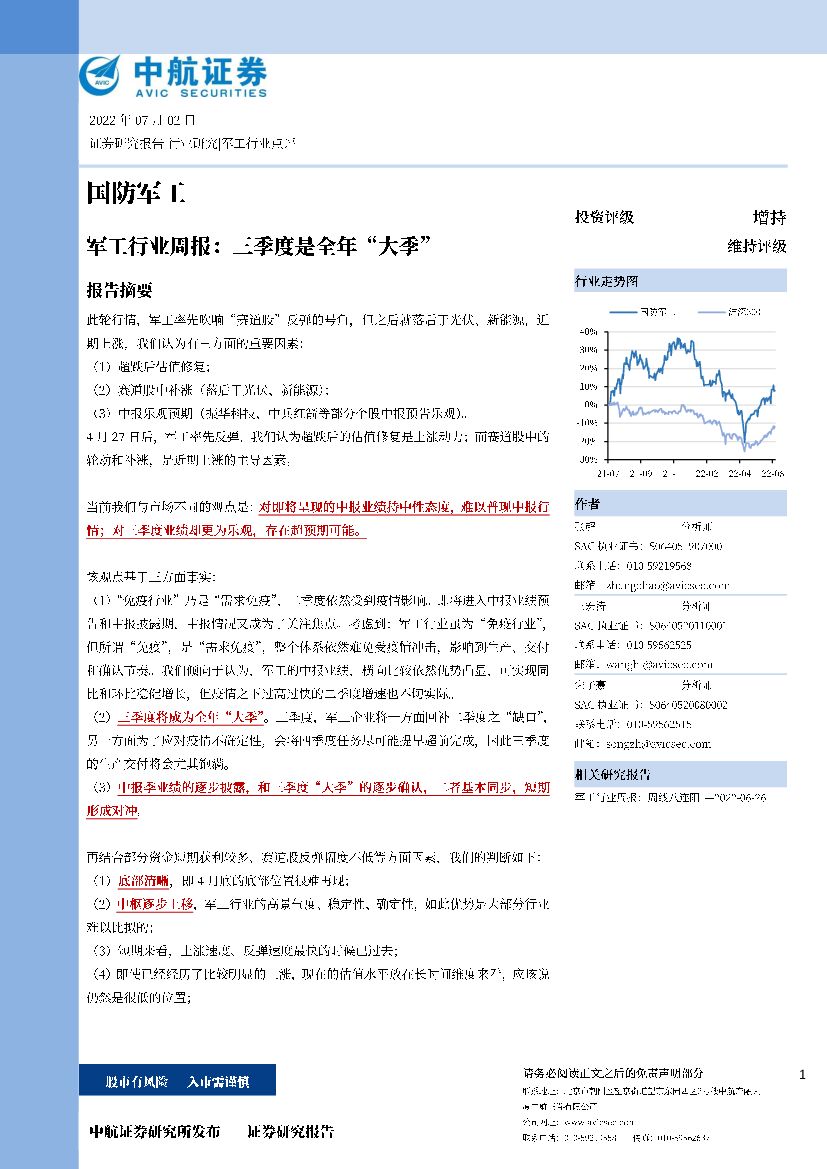 中航证券:军工行业周报:三季度是全年“大季”.pdf