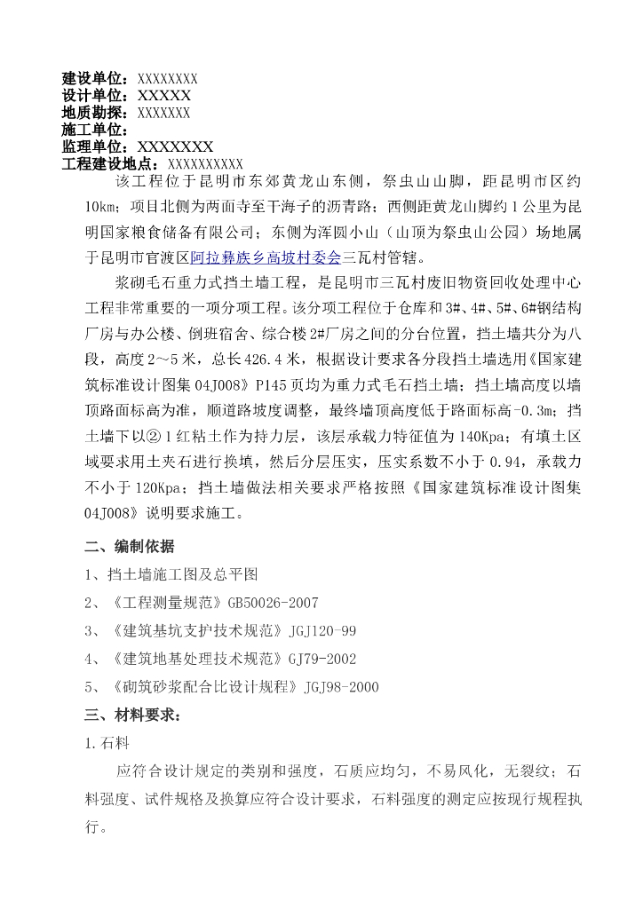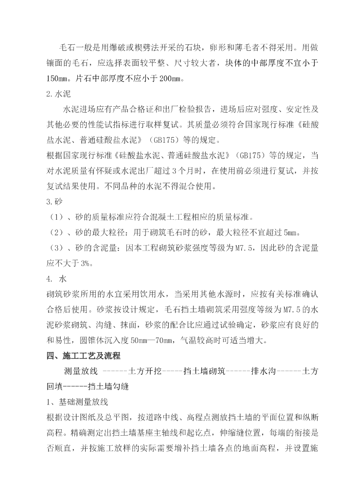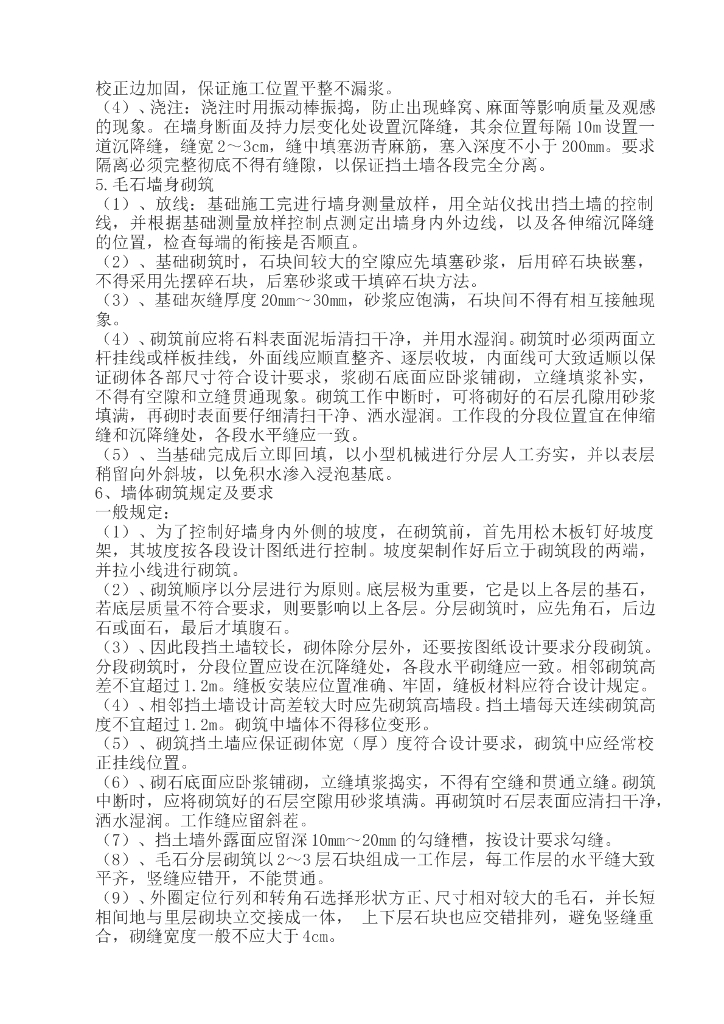 浆砌毛石重力式挡土墙施工方案.doc