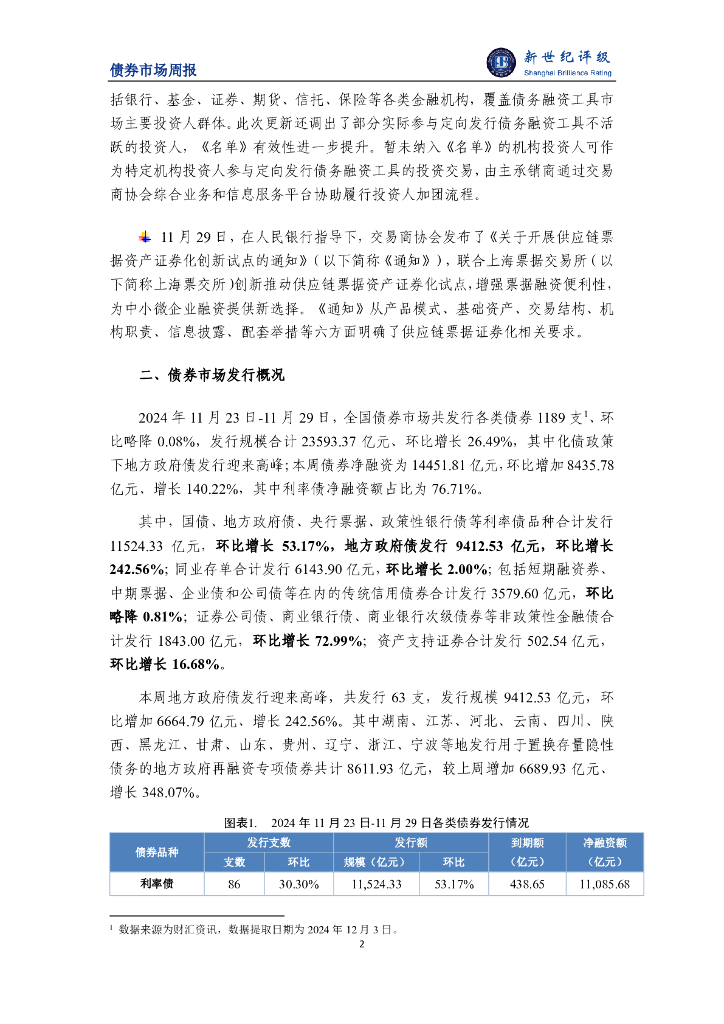 新世纪评级:地方政府化债迎来发行高峰 利率债净融资额大幅增长——债券市场周报(2024/11/23-11/29).pdf