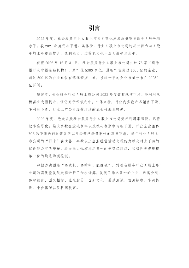 和恒咨询:社会服务行业A股上市公司高质量发展报告(2022年报).pdf
