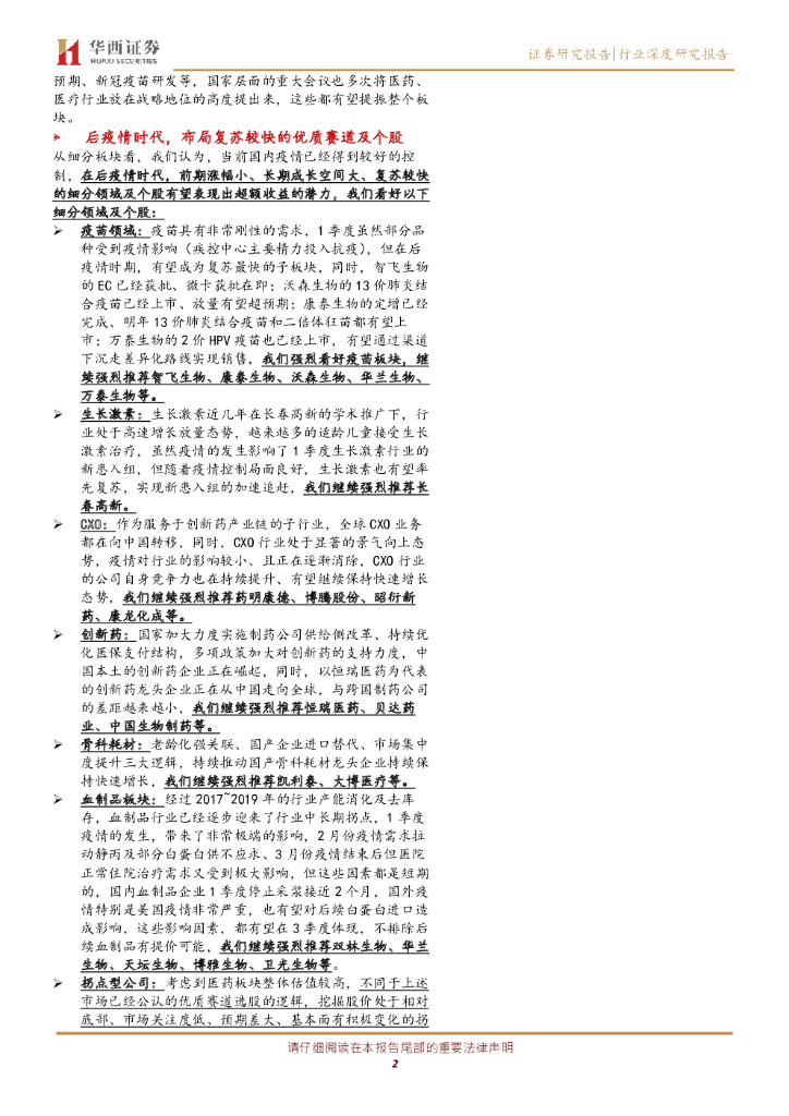华西证券:年报、一季报总结暨医药行业投资策略:后疫情时代,寻找复苏先行的景气子行业及个股.pdf