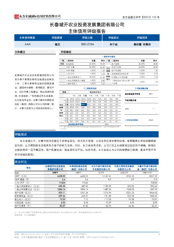 东方金诚:长春城开农业投资发展集团有限公司主体信用评级报告.pdf