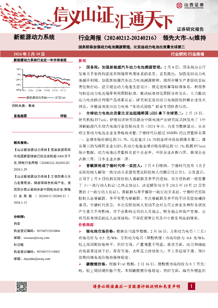 山西证券:新能源动力系统行业周报:国务院称加强动力电池溯源管理,比亚迪动力电池出货量全球第二.pdf
